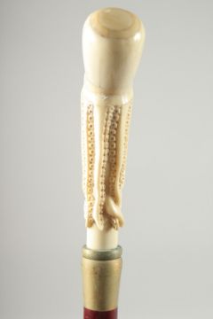 A WALKING STICK with carved bone handle. "OCTOPUS".