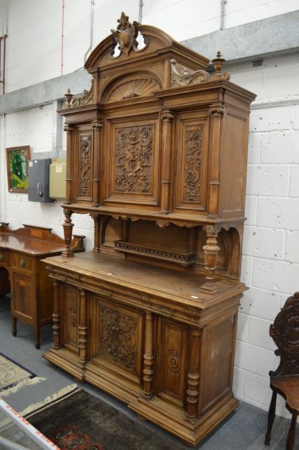 A good large Continental carved walnut cabinet, 290cm high x 170cm wide.