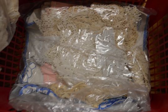 A good collection of early lace trimmings, embroidered Christening gowns etc.