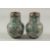 A PAIR OF UNUSUAL CHINESE TURQUOISE GROUND TWIN HANDLE CLOISONNE DRAGON VASES, bases with character mark, 15cm high.