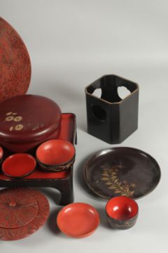 A LARGE COLLECTION OF VARIOUS JAPANESE LACQUERED ITEMS, (qty).