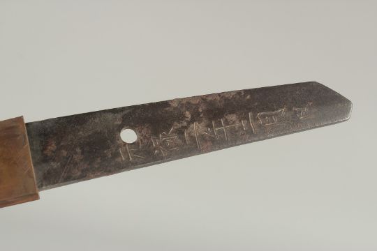A 20TH CENTURY JAPANESE SHIRASAYA WITH SIGNED BLADE, blade 60cm, overall 83cm long.