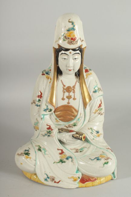A LARGE JAPANESE KUTANI WARE KANNON FIGURE, 39cm high.