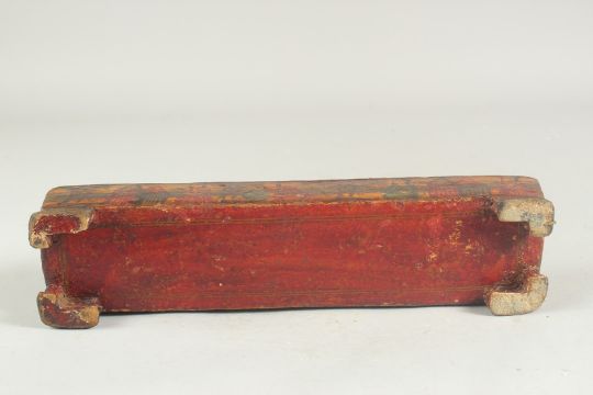 A LARGE QAJAR PAPIER MACHE PEN BOX, 30cm long.