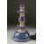 A PAIR OF BLUE AND WHITE CANDLESTICKS. 11ins high.