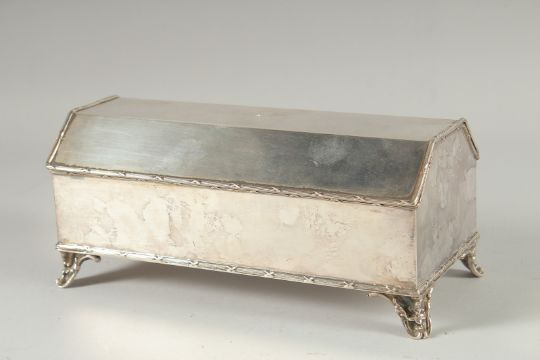 A GOOD SILVER PLATED DESK INK CASKET with rising top and fitted interior.