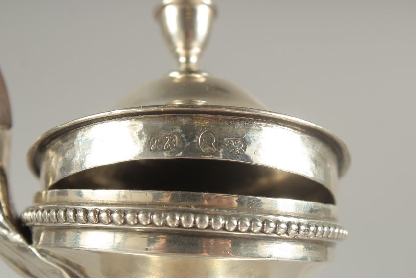 A SUPERB GEORGE III SILVER COFFEE POT by Hester Bateman, urn shape, beaded edge on square base.