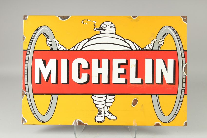 A LARGE TIN MICHELIN SIGN 14ins x 23ins.
