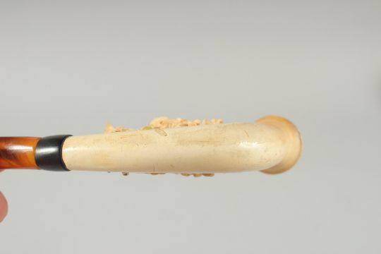 A MEERSHAUM CURVING PIPE, CARVED WITH TWO OWLS with glass eyes.