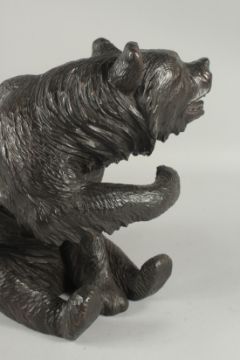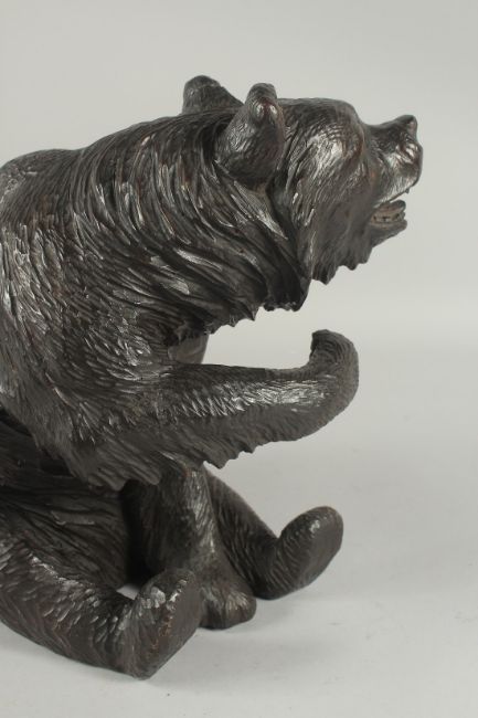A SUPERB 19TH CENTURY BLACK FOREST CARVED WOOD SEATED BEAR.