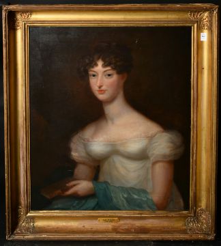 19th Century School, a portrait of a seated lady holding a book, thought to be Ann Philips (1798-1858) oil on canvas, 30" x 25", in a period frame.