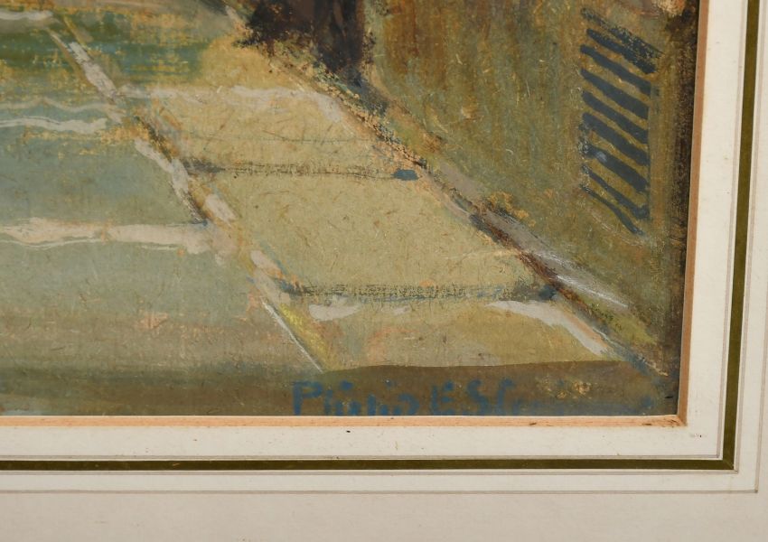 Philip Eustace Stretton (late 19th/Early 20th Century), figures walking in Shepherd's market, watercolour and gouache, signed, 12.5" x 15.5" (32 x 38cm).