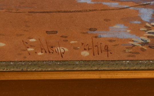 Frederick Alsop (fl.1869-1883), Moored sailing boats in an inlet with men working, thought to be at Portencross, Ayrshire, watercolour, signed and dated twice, 10" x 14", (25.5x35.5cm).