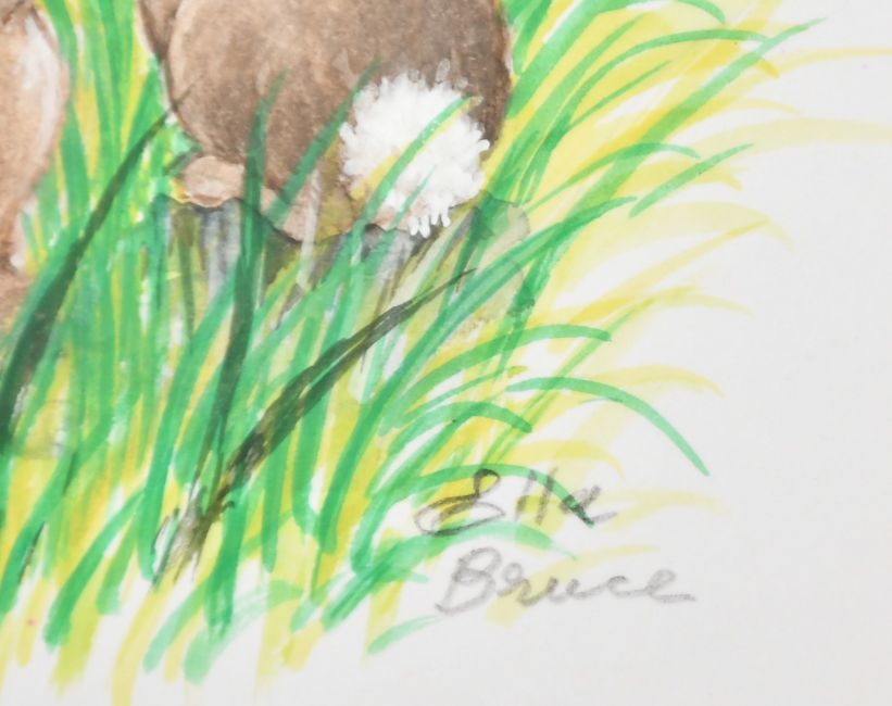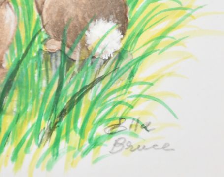Ella Bruce (20th Century), a fawn and two rabbit amongst grass, watercolour, signed, 9" x 6.75" (23 x 17cm), unframed.