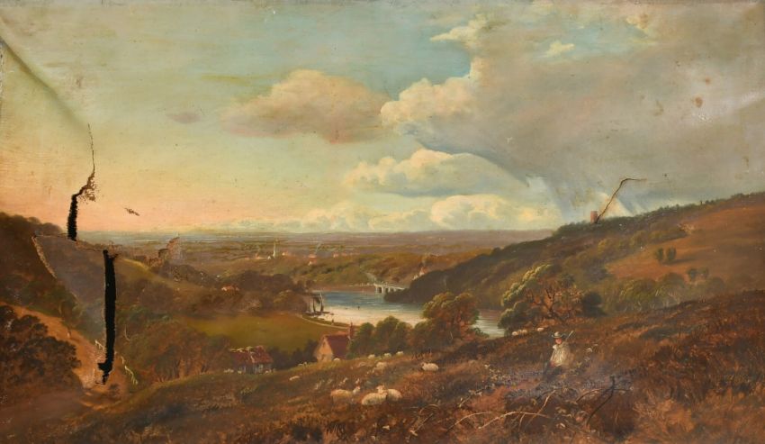 Circle of Niemann, shepherd resting in a river landscape, oil on canvas, 21" x 36" (53 x 91.5cm).