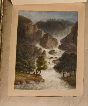 19th Century leather bound folio of topographical subjects, some Continental, and genre scenes, 20 works in total, various sizes, 17" x 12" (43 x 30cm) overall.