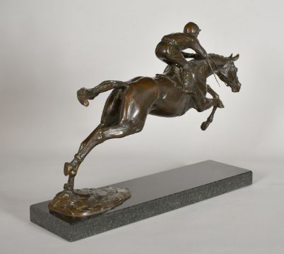 Priscilla Hann (b. 1943), a patinated bronze figure of a horse and jockey jumping, signed P. Hann, dated 1988 and numbered 5/6, mounted on a polished granite base, 13" (33cm) high.