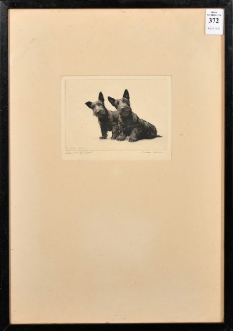 Morgan Dennis (1892-1960) American, an etching of two terriers, signed and inscribed in pencil, plate size, 3.5" x 5" (9 x 13cm).