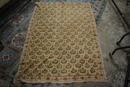 A good Arts and Crafts style Eastern cotton and floral woven throw or wall hanging 180cm x 130cm.