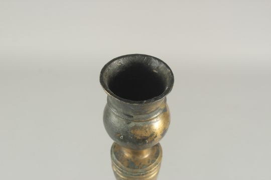 A LARGE 17TH CENTURY OTTOMAN BRONZE CANDLESTICK, 49cm high.