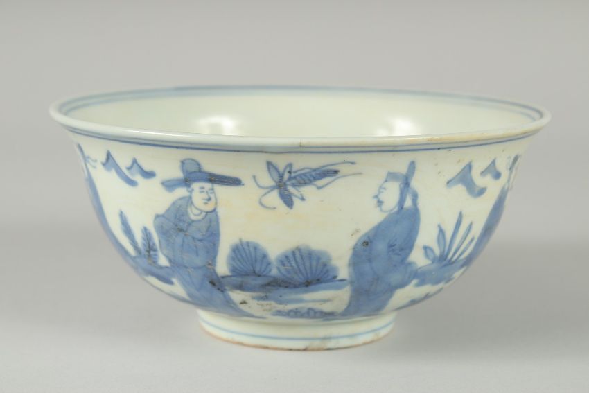 A CHINESE MING BLUE AND WHITE BOWL, (af), together with another blue and white bowl, (2).