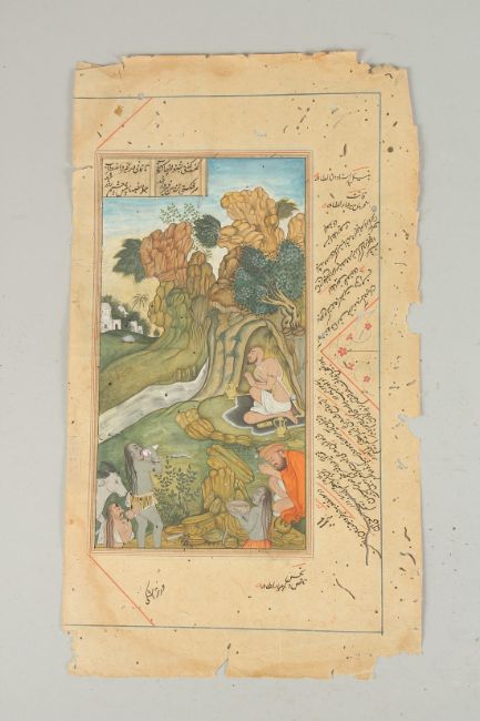 A FINE 19TH CENTURY INDIAN MINIATURE PAINTING, depicting holy saints, fine calligraphy to verso, 30cm x 18cm.