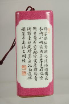 AN UNUSUAL CHINESE FAMILLE ROSE PORCELAIN INRO, the inner case painted with erotic scenes, 9cm long.