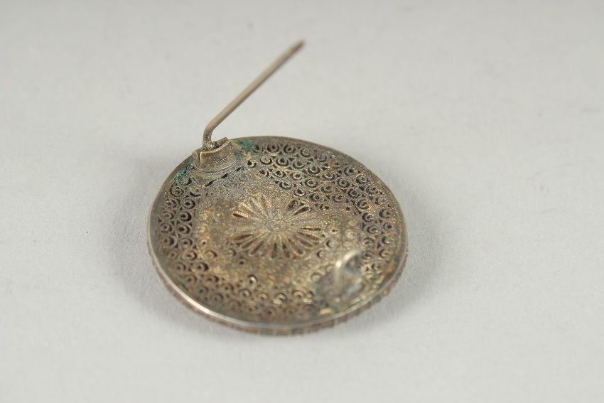A SMALL CHINESE CINNABAR LACQUER BROOCH.