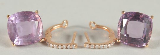 A PAIR OF 18CT GOLD AMETHYST AND DIAMOND EARRINGS