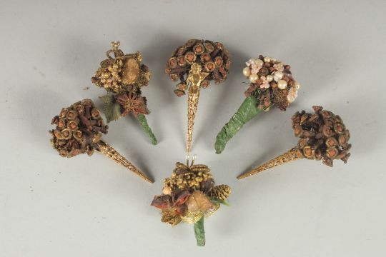 A COLLECTION OF SIX POSY HOLDERS.