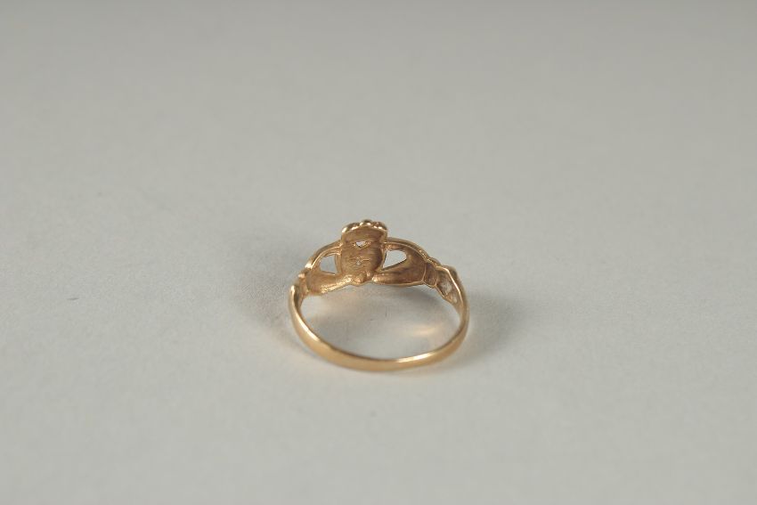 A 9CT GOLD CLADDAGH RING.