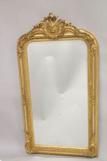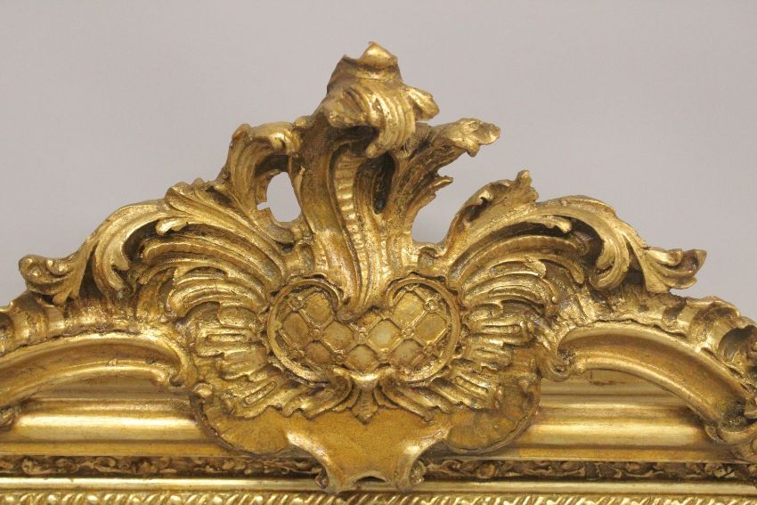 A GOOD GILTWOOD UPRIGHT MIRROR. 5ft high x 2ft 8ins wide.