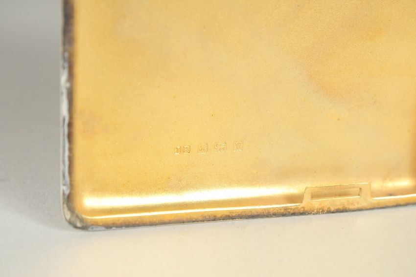 AN ENGINE TURNED SILVER CIGARETTE CASE.