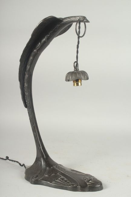 AN ART DECO BRONZE EAGLE LAMP on a shaped base.