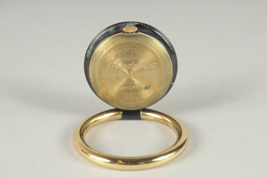 AN YVES ST. LAURENT QUARTZ TRAVELLER WATCH in a pouch.