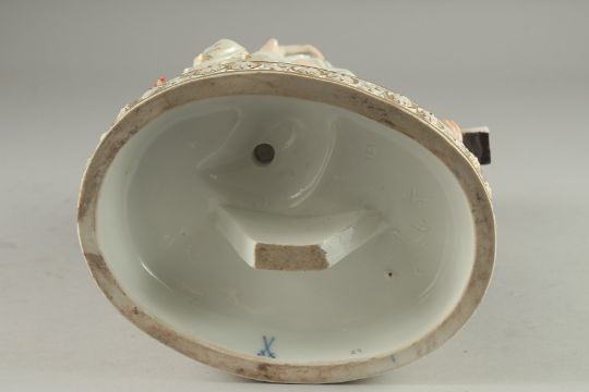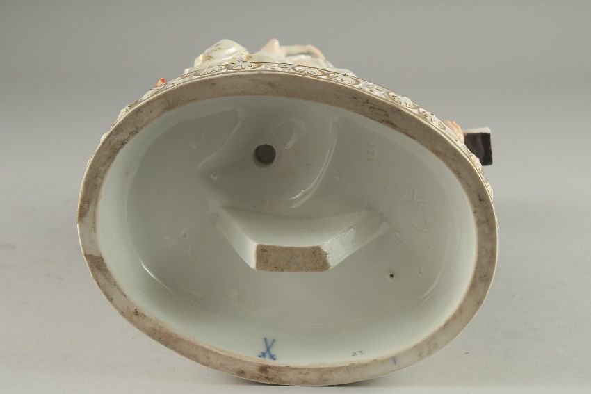 A VERY GOOD AND FINE 19TH CENTURY MEISSEN GROUP, a lady seated in a chair,