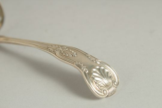 A VICTORIAN SILVER QUEENS PATTERN SIFTER SPOON.