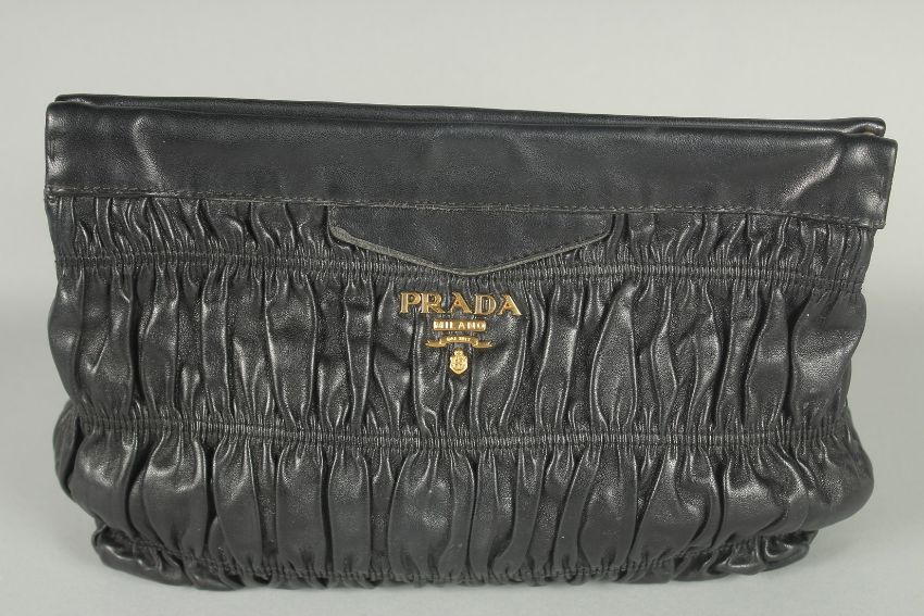 A PRADA SOFT BLACK LEATHER BAG.