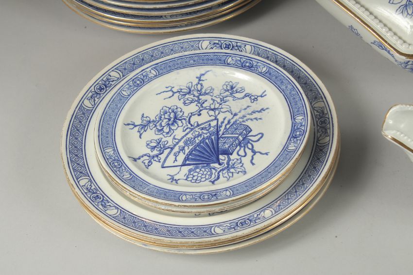 A CHRISTOPHER DRESSER DESIGN BLUE AND WHITE PART DINNER SET COMPRISING: