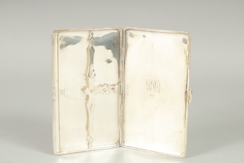 AN ENGINE TURNED SILVER CIGARETTE CASE.