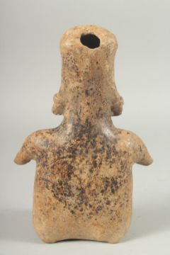 A RARE SOUTH AMERICAN POTTERY SEATED FEMALE FIGURE.