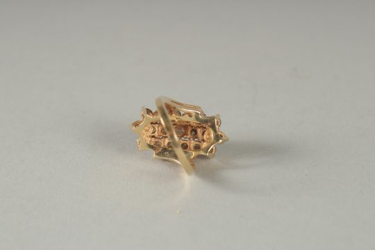 A GOOD 14CT GOLD CHAMPAGNE DIAMOND CLUSTER RING.