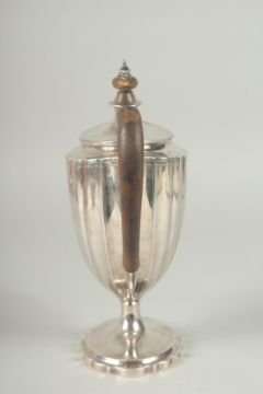 A GEORGE III SILVER COFFEE POT of tapering fluted form with wooden handle and final.