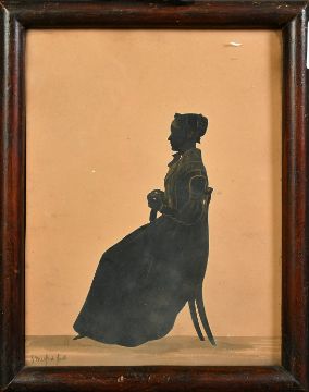 Samuel Metford (1810-1896), two silhouettes of female figures, one standing, one seated, heightened in white and gilt, both signed, both 9" x 7" (23 x 18cm), (2).
