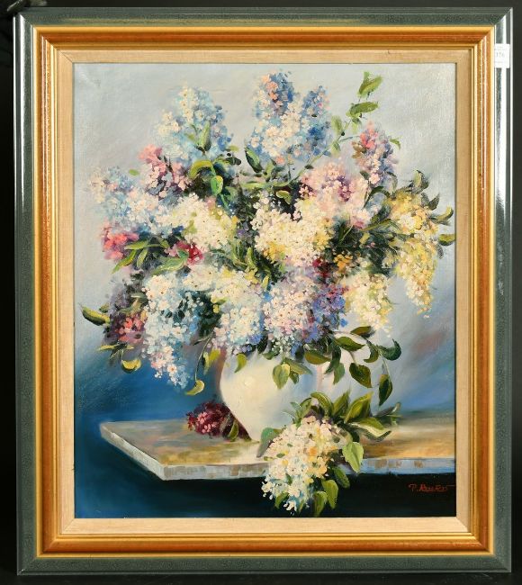 P. Roberis, (20th Century) A still life of mixed lilac, oil on canvas, signed, 24" x 20", (61x51cm).