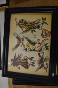 A set of six framed and glazed original artworks for Tattoo Artist.