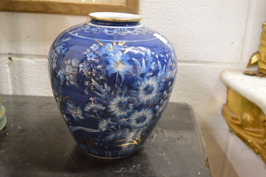 A large Japanese blue glazed and gilt decorated vase.