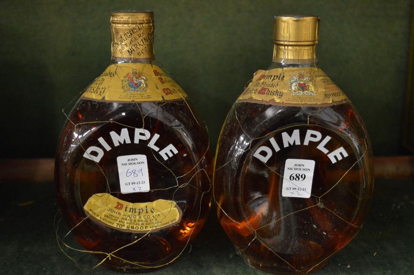 Two bottles of Dimple whisky.