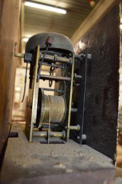 A 19th century oak long case clock with eight day movement, the painted square dial signed Pickell, Marlborough.