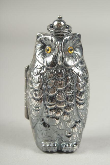 A silver plated owl double sovereign holder, 6cm.